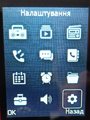 Перейдіть до Меню, оберіть пункт Налаштування, натисніть ОК (або центральну клавішу) |