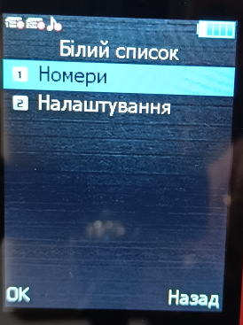 Для перевірки стану функціоналу перейдіть в Білий список–Налаштування. Увага!. При ввімкненні функціоналу БС додзвонитися до Вас зможуть лише ті, хто доданий до Білого списку |