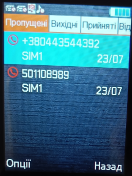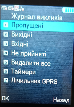 Також додати номери в ЧС можна безпосередньо з журналу викликів. Для цього прейдіть в Меню, оберіть Журнал викликів, натисніть ОК (або центр клавішу) |
