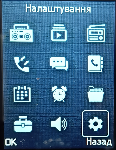 Перейдіть до Меню–Налаштування, натисніть ОК (або центр клавішу) |