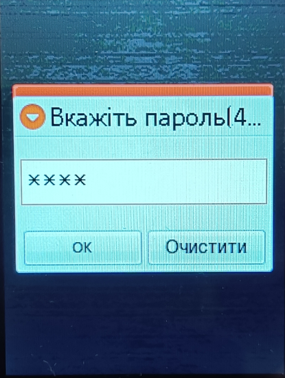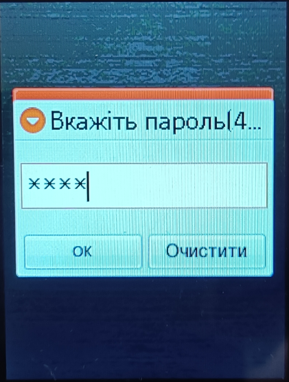 Введіть пароль, натисніть ОК (або центр клавішу) |