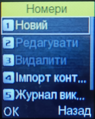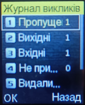 Також додати номери в БС можна безпосередньо з журналу викликів. Для цього прейдіть в Меню, оберіть Журнал викликів, натисніть ОК (або центр клавішу) |