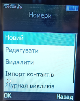 Також додати номери в ЧС можна безпосередньо з журналу викликів. Для цього прейдіть в Меню, оберіть Журнал викликів, натисніть ОК (або центр клавішу) |