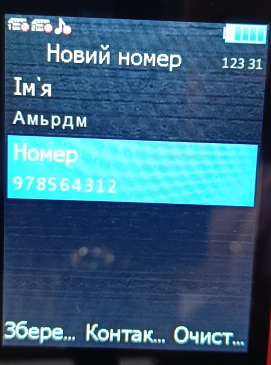 Ввідіть Ім’я та Номер абонента, натисніть Зберегти |