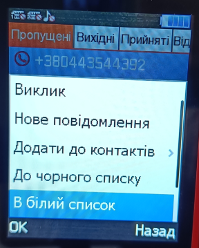 Для перевірки стану функціоналу перейдіть в Білий список–Налаштування. Увага!. При ввімкненні функціоналу БС додзвонитися до Вас зможуть лише ті, хто доданий до Білого списку |