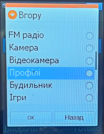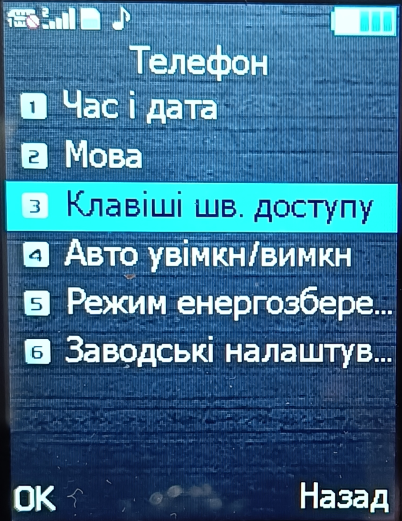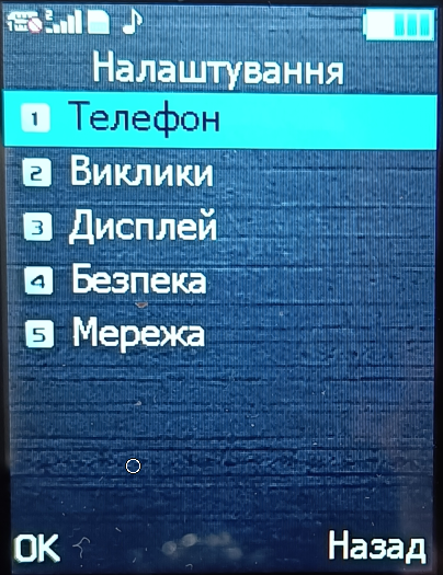 Перейдіть до Меню–Налаштування, натисніть ОК (або центр клавішу) |