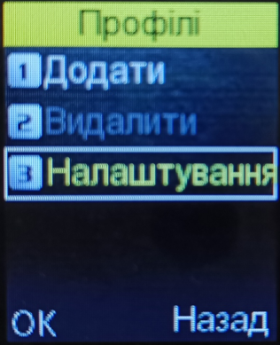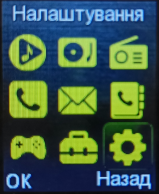 Перейдіть до Меню–Налаштування, та натисніть ОК (або центр клавішу)