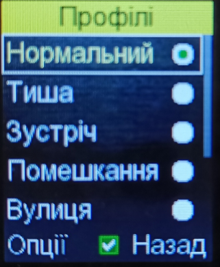 Оберіть профіль для налаштування, наприклад Нормальний, натисніть Опції