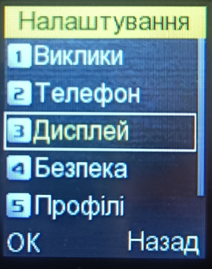 Перейдіть до необхідного пункту, для вибору натисніть ОК (або центр клавішу)