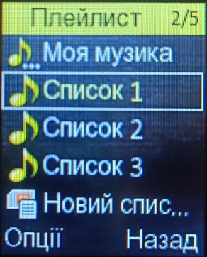 Також є можливість створення списків відтворення вручну з додаванням файлів з будь якої папки на картці пам'яті.