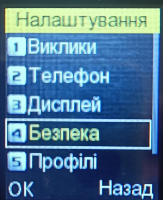 Перейдіть до Меню, оберіть пункт Налаштування, натисніть ОК (або центральну клавішу) |